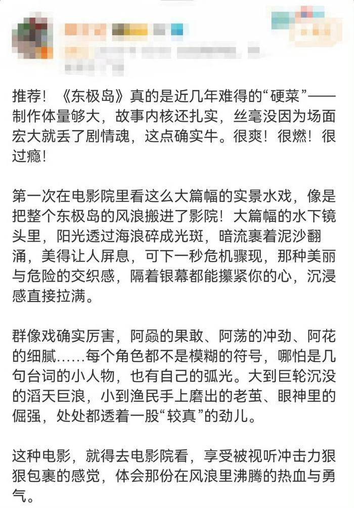 《东极岛》的水下实拍太悠扬!莫得殊效加捏,每一帧齐是确凿海水的律动。IMAX镜头下,浪花翻涌的力量、水流缠绕的紧密,全成了直抵感官的冲击。坐在影院,仿佛随着脚色沿途千里浮,被浪头包裹时的压迫感、水下光影的幻化,齐让东说念主屏住呼吸,这才是大银幕的魔力!