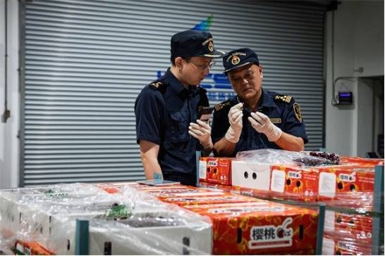 生鲜生果保鲜期短,输送和通关速率至关焦躁。为有用压缩入口樱桃的通关工夫,深圳海关主动对接入口商了解入口谋略,多渠谈密切与航司、货站、货代等单元部门的连结勾通,及时跟进航班起降、文告动态等信息,达成入口鲜樱桃输送、仓储、通关方法高效相接。