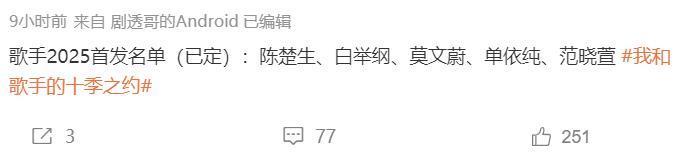 紧接着,网上又传出一份名单,咱们齐知谈,节目行将录制前,网传的名单准确度会终点高,从这份名单上看,有三位歌手将参与录制: