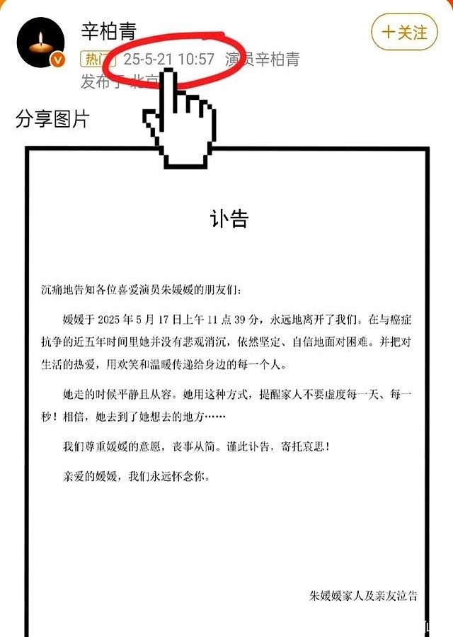 而目下,朱媛媛升天了,辛柏青也发布了讣告,时间是“5211057”,谐音“我爱你你是吾妻”。这波操作,照实感动了不少东谈主,也让深广网友泪奔。