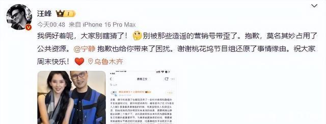 随后汪峰发文, 对宁静谈歉“抱歉对您变成困恼” ,还专诚暗示“咱们好着呢”。
