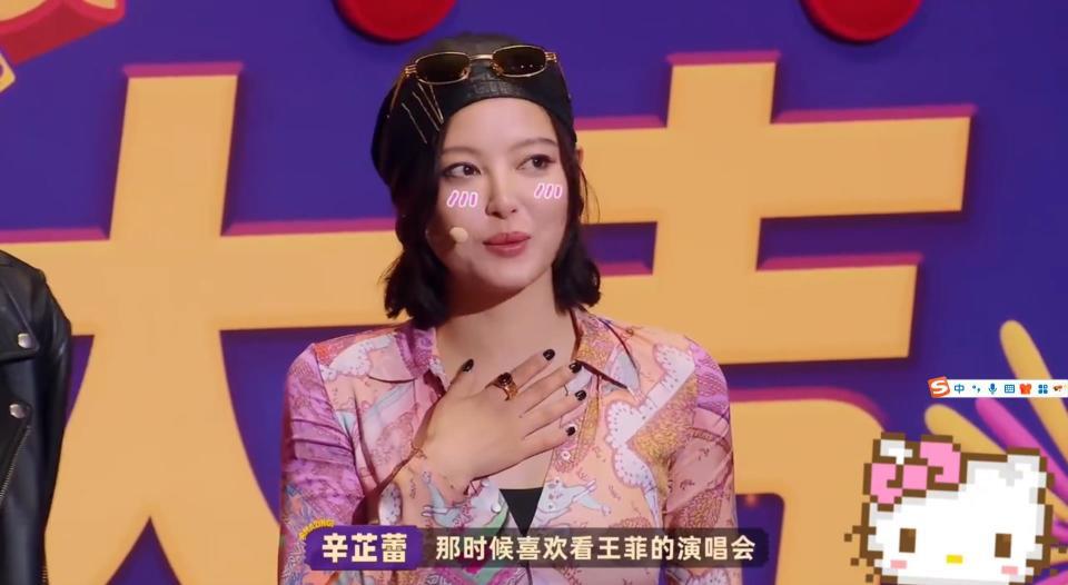 一亮相,辛芷蕾就凭借银色亮片短裙、渐变挑染发型和金属配饰等经典 Y2K 元素,引爆全场尖叫。不雅众席高频呼喊着“好好意思”“好漂亮”,沮丧激烈。节目组更是用“王菲来了皆得愣两秒”来态状其惊艳恶果,示意这套造型的气场直逼王菲巅峰时分的先锋感。