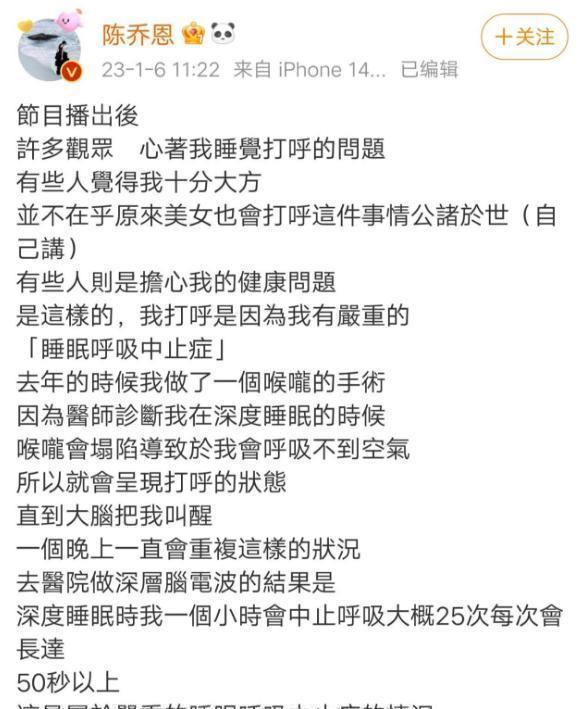 艾伦说的是她刚与陈乔恩同居时的事情,现时动完手术打呼还是莫得那么严重了。现时不追思陈乔恩打呼了,倒是追思 艾伦啦。