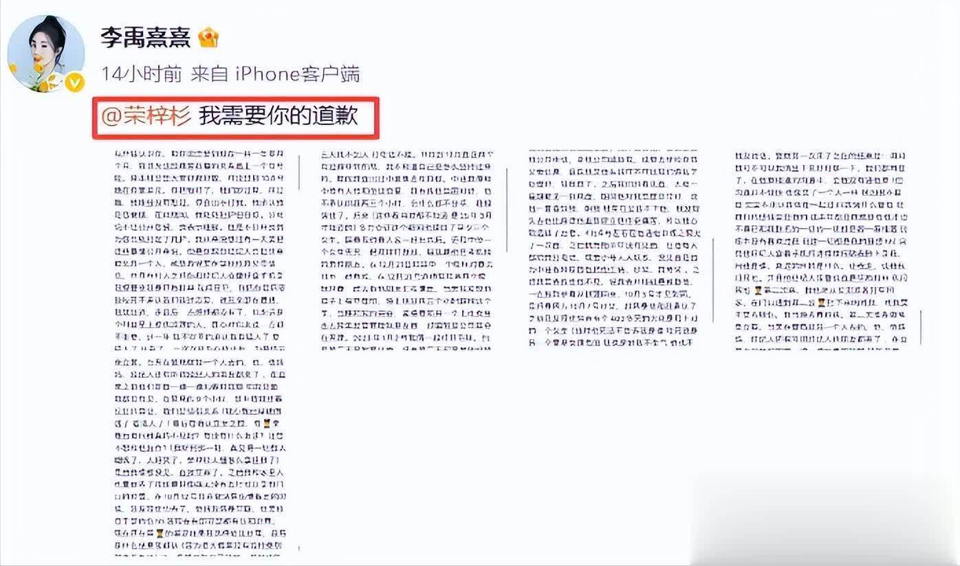 十月中旬的一天,中戏毕业生李禹熹发布了一条长文,爆出了荣梓杉的好多黑料。