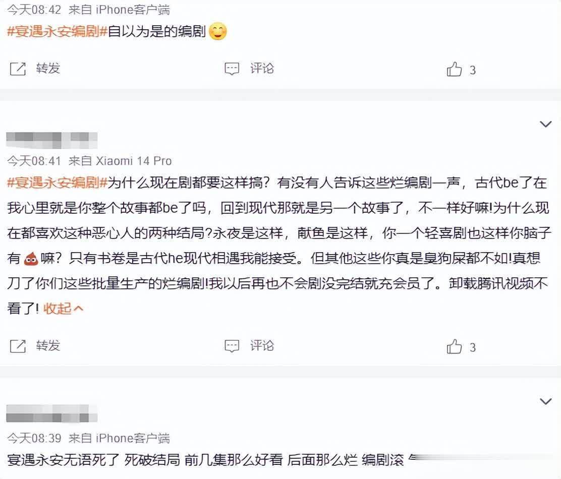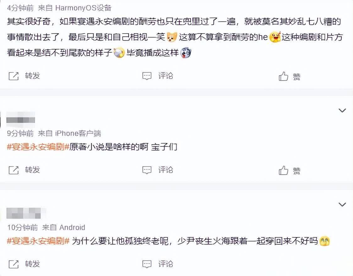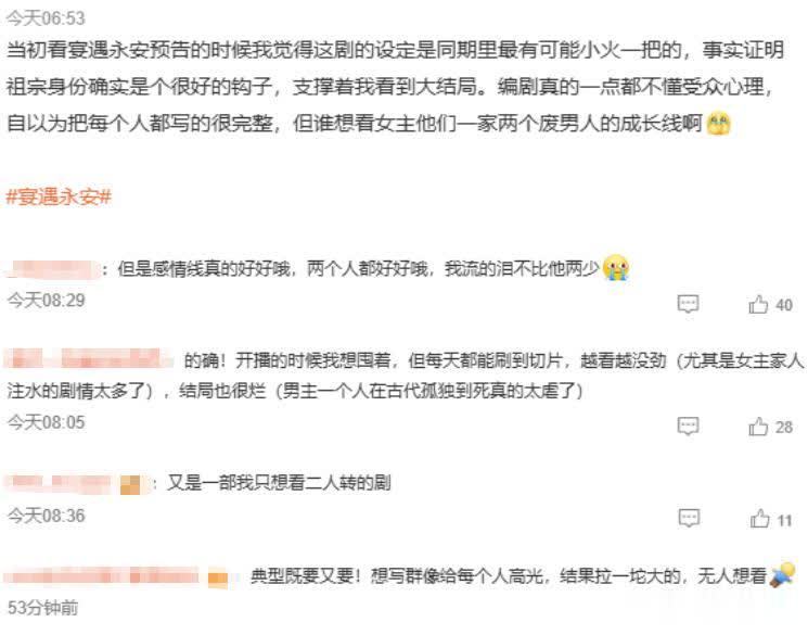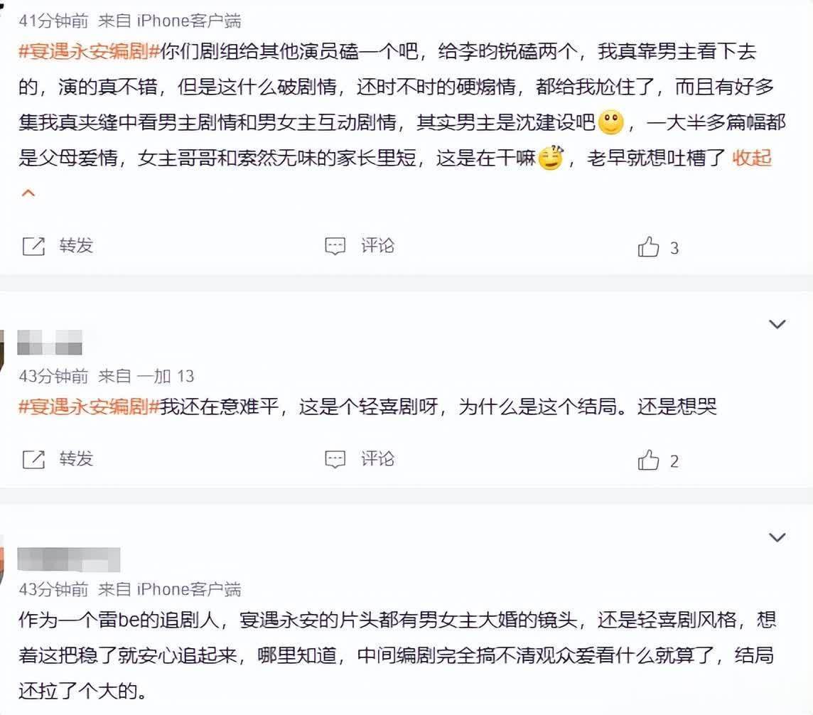 看到《宴遇永安》大结局的不雅众止境活气,嘲讽这是“编剧和剧方结不到尾款”的神志。