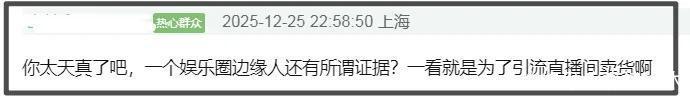 其他网友看到朱孝天的说念歉直言怂了,没预见滑跪这样快,以为果然掌抓了实锤,太没意念念。同期,朱孝天说念歉的获胜成果是个东说念主口碑全失,有网友合计他行为一个文娱圈边际东说念主,手里根柢不可能有字据,这几天的爆料行径仅仅为了直播间卖货引流。
