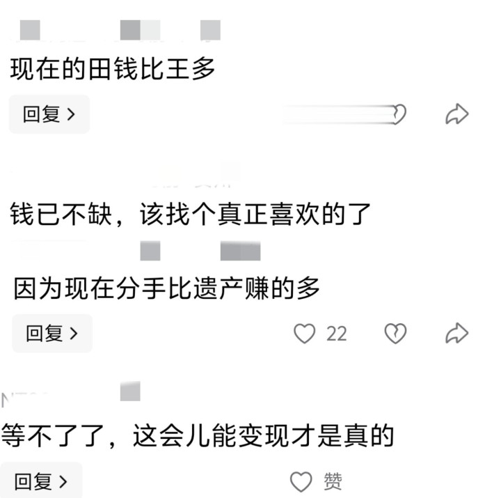 网友还以为田朴珺目下的钱比王石多,遗产也不会有若干,才45岁,不会思养照旧毁灭上千万退休金的75岁老翁。