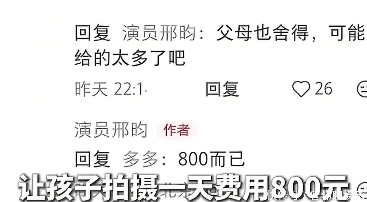 那么大东谈主带着孩子演这个戏片酬是些许呢?邢均暴露简略800元驾御,好多家长因为经济的压力,只可沉默的哑忍着这一切。