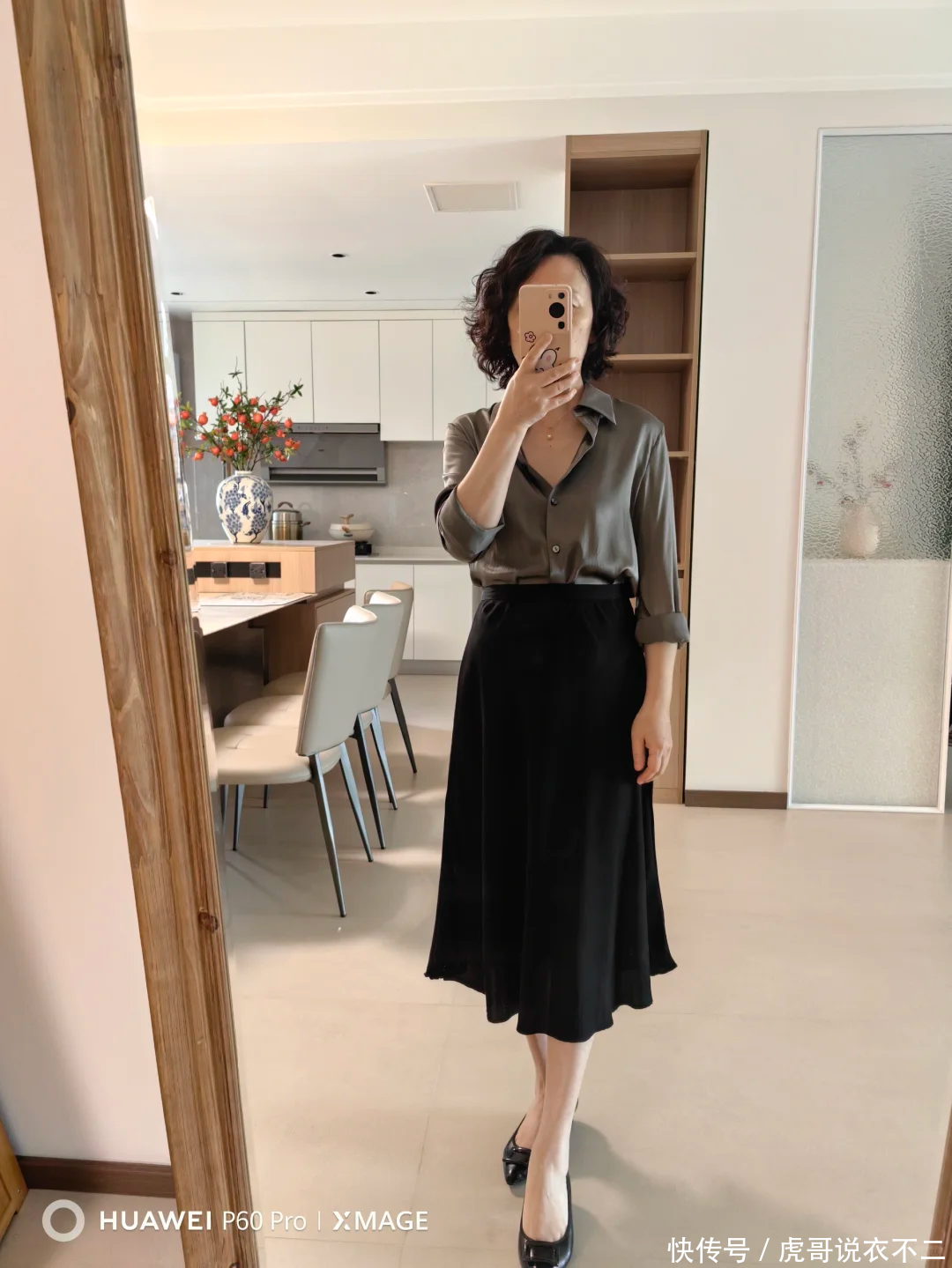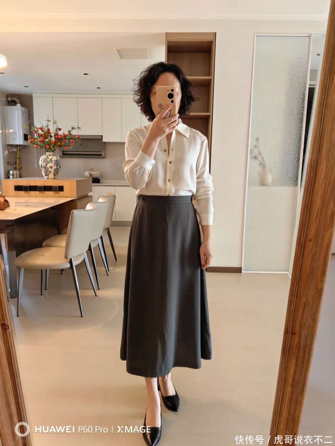 而50岁的女性,则更隆重节约与高等感。基础色系的衬衫搭配上质感上乘的半身裙,无需过多杂沓词语的保密,便能空闲出锻练女性的独有魔力。这种可以证明个东谈主作风和需求进行目田搭配的特质,恰是“衬衫+半身裙”前锋魔力的中枢场所。