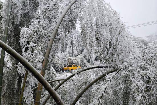 炎井小学是全州县海拔最高的小学,被银装素裹的丛林环抱。该校有三个班、一个幼儿园共24名学生。受这次寒潮影响,大部分学生因为山路结冰、交通未便无法到校,只好隔邻3名孩子走路上学。